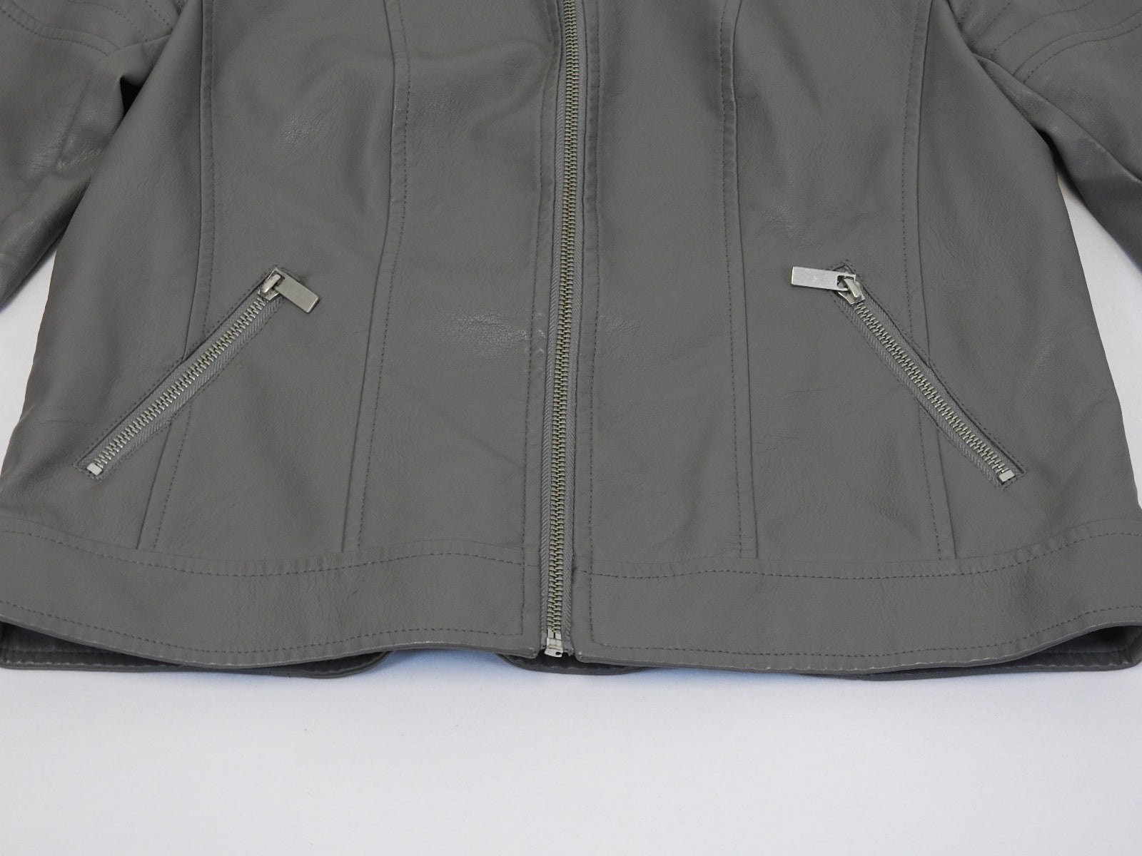 This Baccini women's biker jacket in gray delivers timeless edge without breaking the bank. Made from polyurethane and polyester, this pre-owned treasure in good condition brings authentic rocker style to your closet. Size S. Whether you're layering over a dress for evening sophistication or pairing with jeans for weekend cool, this jacket transforms any look with effortless attitude. A smart investment piece that works as hard as you do.
