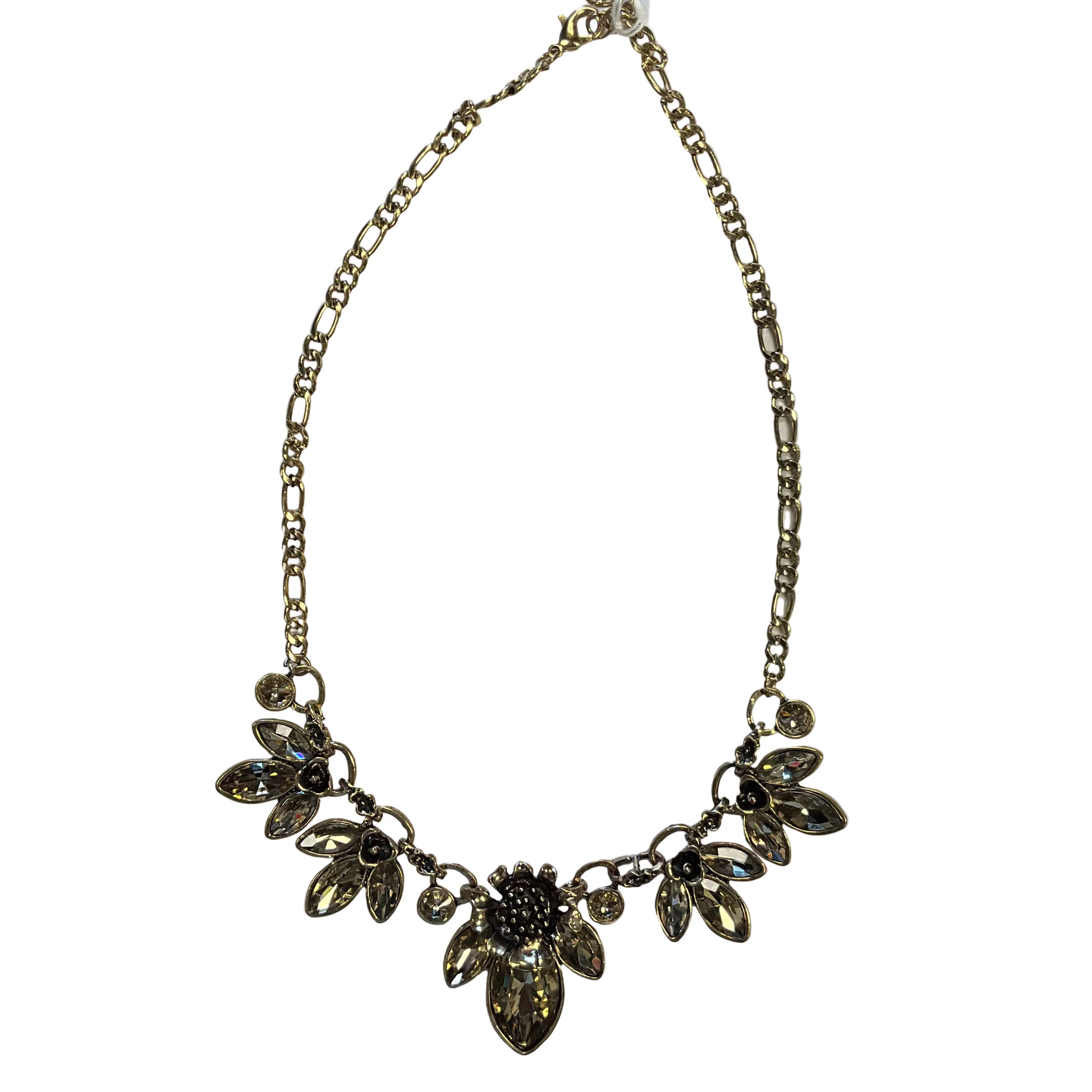 Gold Tone Vintage Chain Link Rhinestone Leaf Necklace