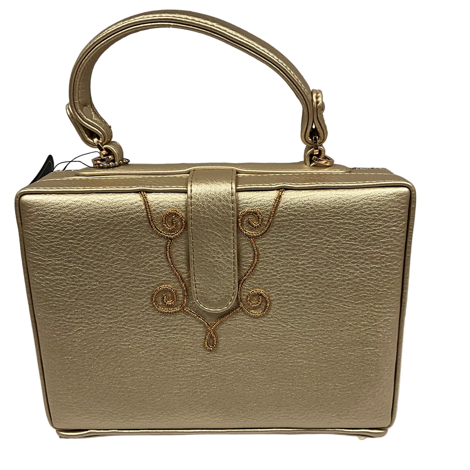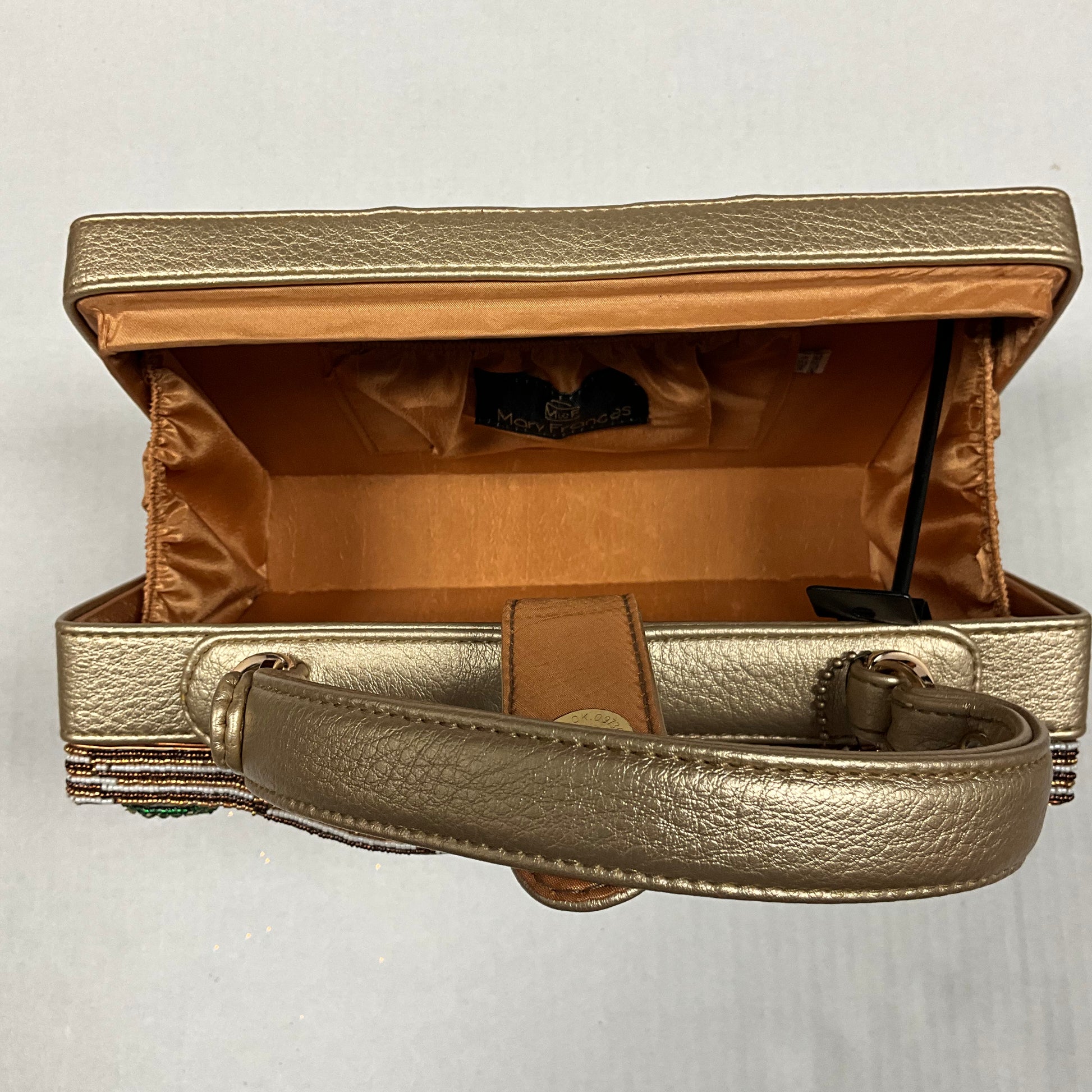 Get ready to turn heads this holiday season with this delightfully beaded handbag that's bursting with festive flair. Hand-adorned with cheerful red, gold, and green beads, it's the perfect companion for all your merry celebrations. Carry your essentials in style with a sturdy top handle and keep everything organized with a handy interior pocket. The magnetic closure ensures your treasures stay safe and sound while you're out spreading holiday cheer. This whimsical Mary Frances creation is your ticket to adding a splash of seasonal sparkle to every festive occasion.
