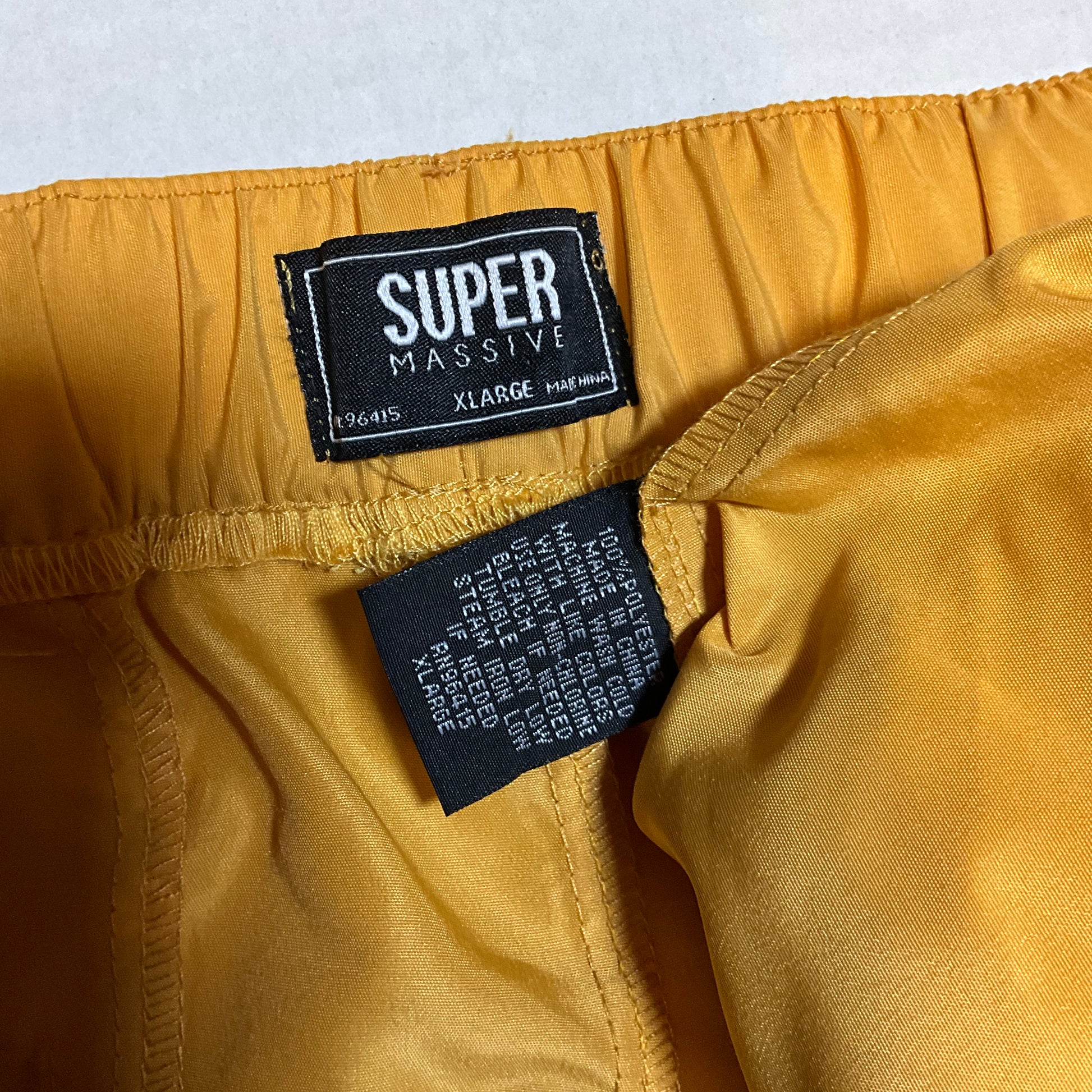 Super Massive Men's Yellow Shorts in XL offer a comfortable, casual fit perfect for warm weather activities. Crafted from durable polyester, these drawstring shorts feature an adjustable waistband for a personalized fit. In good pre-owned condition, they're a budget-friendly choice for anyone looking to refresh their summer wardrobe without breaking the bank. Ideal for everyday wear, workouts, or relaxed outings.