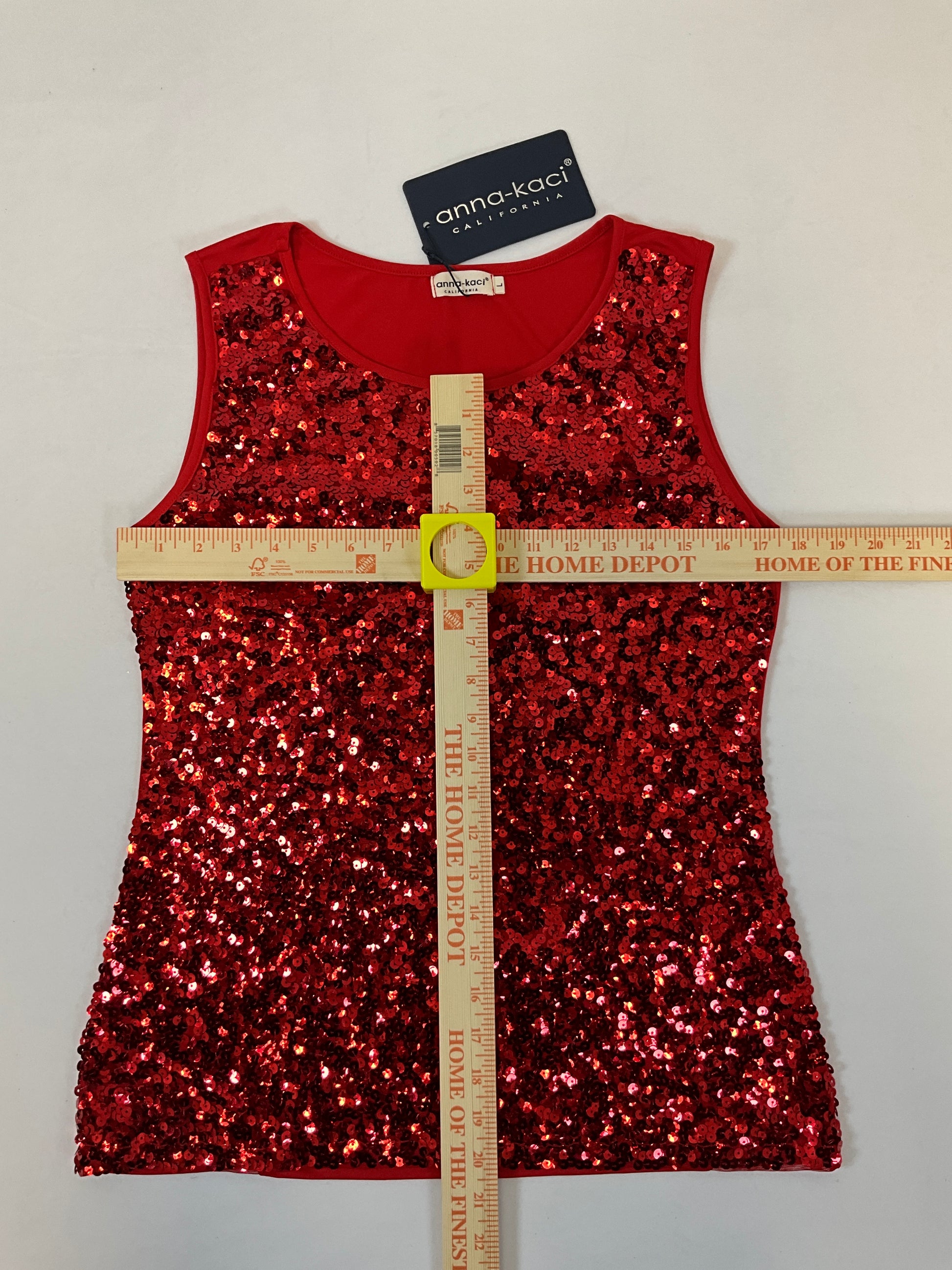 Make a statement this holiday season with the Anna-Kaci California sequin tank top. Featuring an eye-catching red sequin design on a polyester base, this festive piece radiates elegance and glamour. The tailored tank silhouette works beautifully layered under jackets or worn solo at holiday parties and celebrations. Arriving new with tags intact, it's ready to transition seamlessly into your seasonal wardrobe. Size L offers a refined fit for those seeking understated luxury with just the right amount of sparkle.