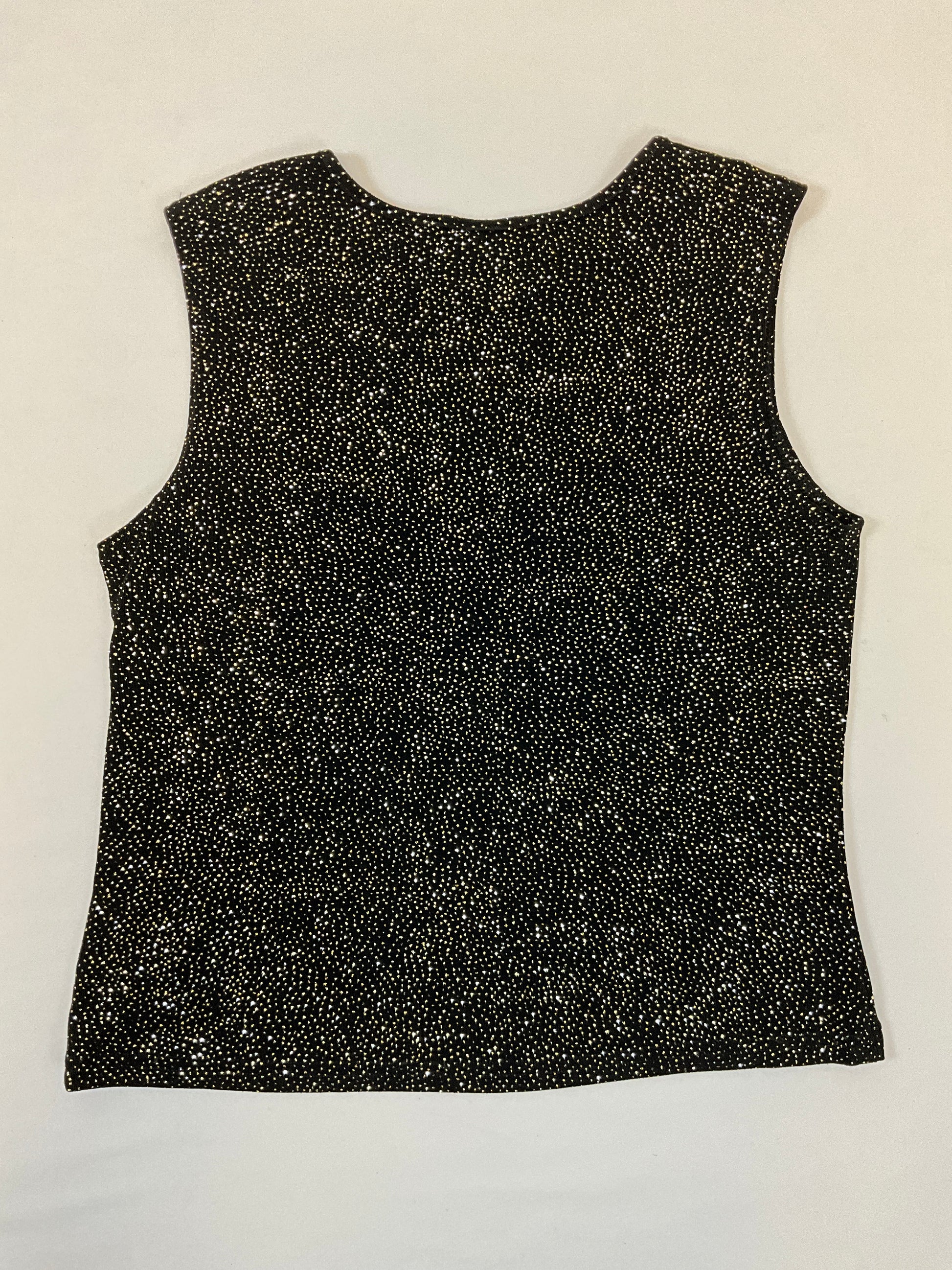 JKLA Women's Black Holiday Sequin Tank Top in size Large brings festive elegance to your seasonal wardrobe. This pre-owned piece features luxurious black sequins accented with delicate gold rhinestones, creating a refined shimmer perfect for holiday gatherings and special occasions. Crafted from a comfortable polyester and spandex blend, it offers both style and flexibility. In good condition, this sophisticated tank delivers designer appeal at an accessible price point for the discerning shopper seeking statement pieces with timeless holiday charm.