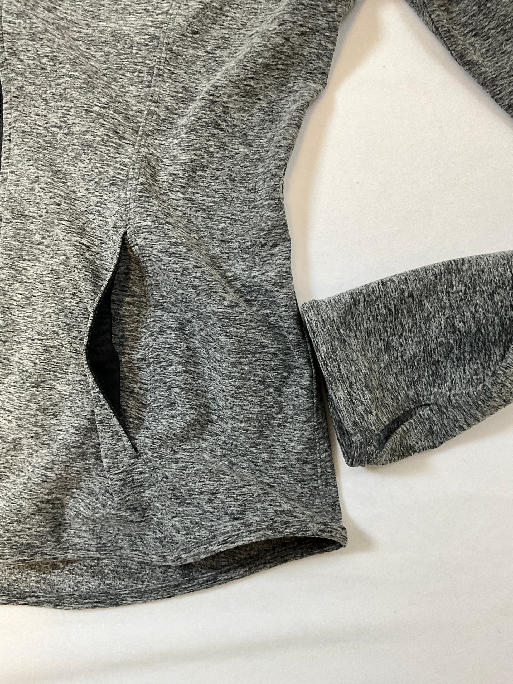Move through your yoga practice with ease in this Women's Yogalicious Lux Ultra Soft Lightweight Full Zip Grey Yoga Jacket. Crafted from a premium blend of polyester, nylon, and spandex, this heather grey jacket delivers exceptional softness and flexibility for every pose and transition. The full zip design offers versatile layering options, whether you're warming up before class or cooling down after. Lightweight yet durable, it's the perfect companion for studio sessions, outdoor flows, or casual wear. Brand new with original tags. Size XL.